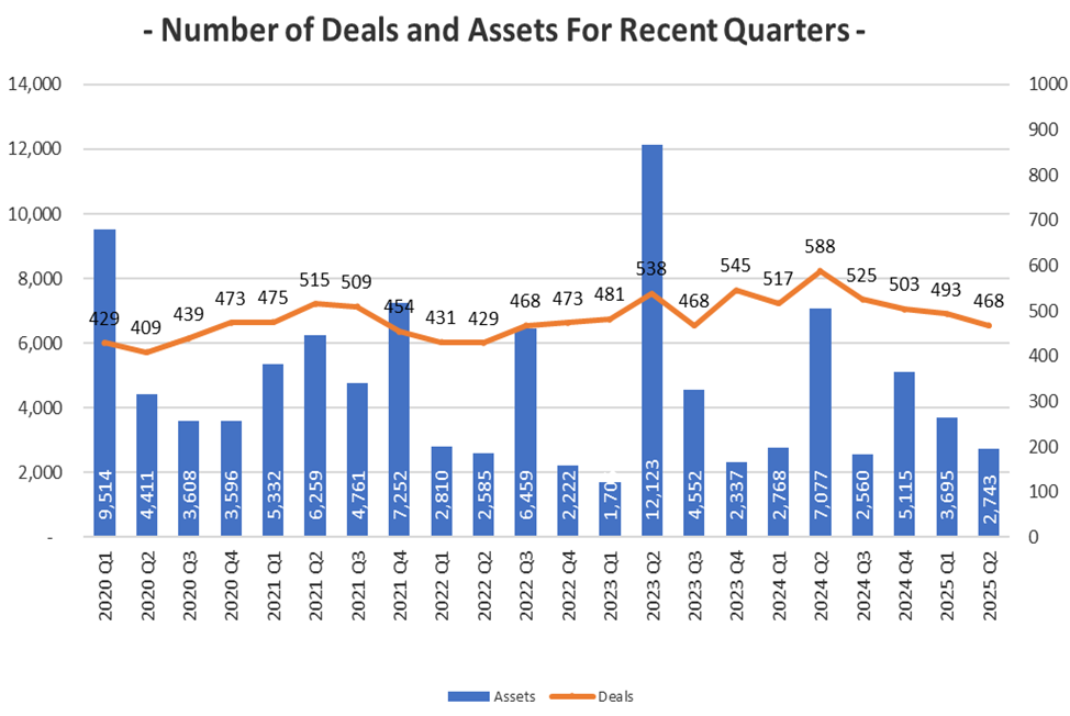 The AST Patent Deals Report for Q2 2025 shows there were 468 patent sale transactions involving 2,743 assets from April to June 2025, which semiconductor and wireless patents leading the pack.