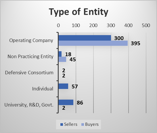 Most of the buyers and sellers were operating companies. Although there were only 45 NPE buyers, they scooped up 45% of the assets in secondary patent market sales in Q2.